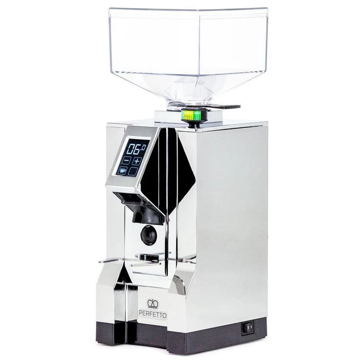Introducing the Eureka Mignon Perfetto grinder. With sound insulated technology this grinder is as quiet as it gets. The combination of it’s silent performance mixed with it’s simplicity really sets this grinder apart. Easily adjust the grind with it’s unique easy setting dial at a simple twist. With two timed settings for a single or double shot this grinder makes it simple to switch back in forth between the two on it’s beautifully simplistic touch screen. With a host of Eureka’s integral innovations, like a grind-saving lower burr adjust, programmable dosing, their ACE anti-clumping system, and an anti-static finish along its grind path. The Eureka Perfetto brings the quality you desire.